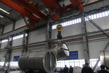 | 大型數控鉆床正在加工管板 | 主生產(chǎn)車(chē)間場(chǎng)景 | 重型設備生產(chǎn)車(chē)間 |