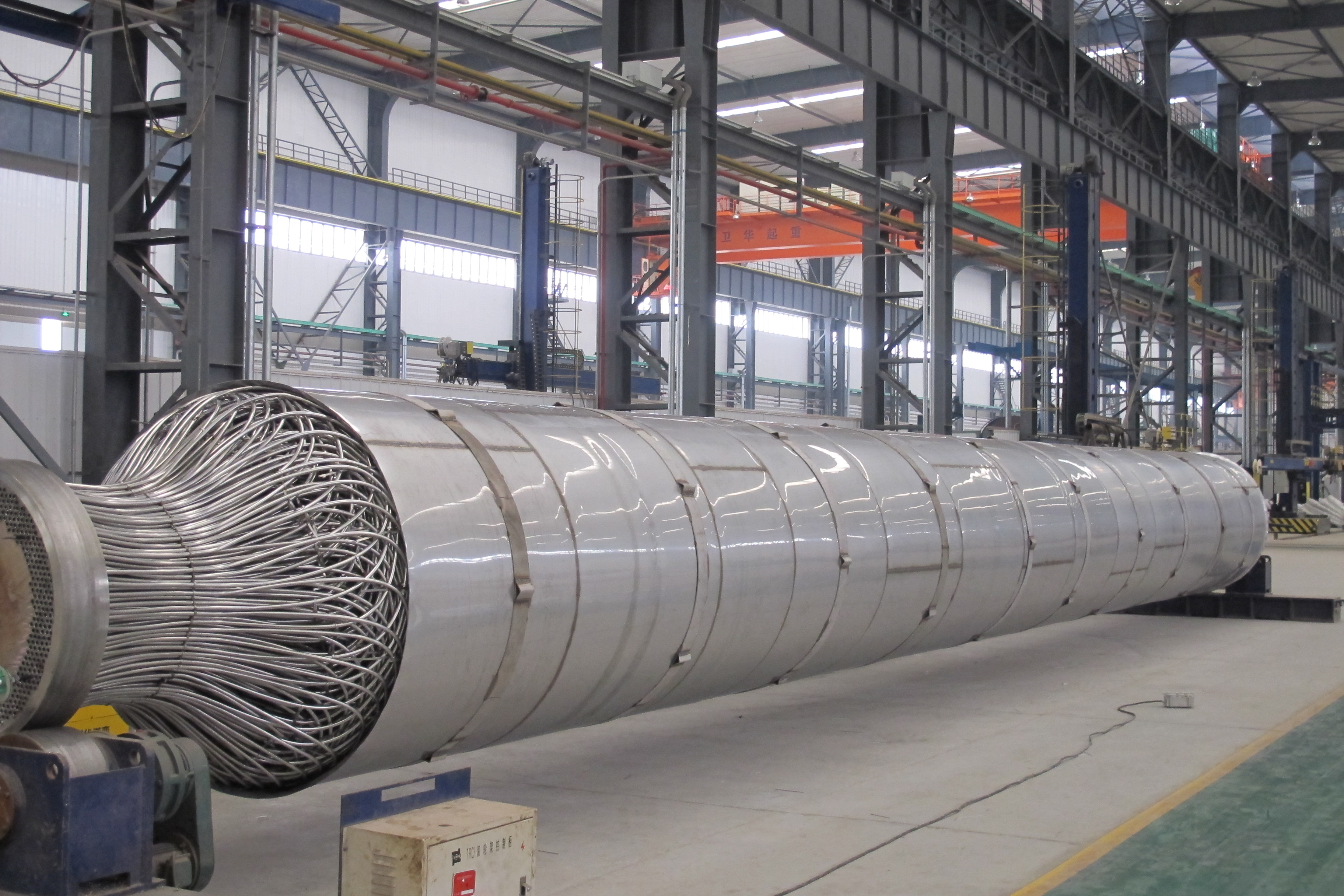 開(kāi)封空分承接的柳化28000Nm3/h空分設備和首套國產(chǎn)化40000Nm3/h大型空分設備中的高壓氧繞管式換熱器,2004年,我公司承接了中國石油化工股份有限公司安慶分公司化肥油改煤項目低溫甲醇洗繞管式換熱器,位號和名稱(chēng)分別為:E-2203變換氣/凈化氣/CO2產(chǎn)品氣換熱器、E-2207甲醇循環(huán)冷卻器、E-2214再吸收塔甲醇/貧甲醇換熱器。2005年,我公司承接了柳州化工股份有限公司大化肥項目繞管式換熱器,位號和名稱(chēng)分別為:A-EA5202原料氣/凈化氣/CO2產(chǎn)品氣換熱器。應用于50萬(wàn)噸甲醇項目的繞管式換熱器的設計及制造,2005年,我公司承接了兗礦國宏化工有限公司兗礦集團高硫煤綜合利用年產(chǎn)50萬(wàn)噸甲醇項目低溫甲醇洗繞管式換熱器,位號和名稱(chēng)分別為:E-2203變換氣/凈化氣/循環(huán)氣/尾氣 換熱器。