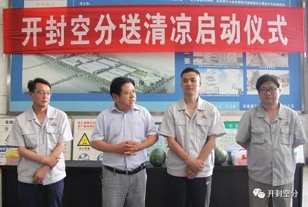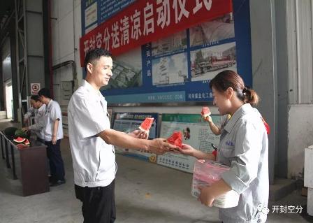 在空分設備廠(chǎng)車(chē)間內,曹小毛、王志峰、張石芳為各基層工會(huì )送上了小藥箱,把切好的西瓜送到工人師傅們手中。“天氣炎熱,大家多注意身體。”“來(lái),吃塊西瓜降降溫吧!”……豐富的藥箱,清涼的西瓜,溫馨的叮囑,讓奮戰在一線(xiàn)的干部職工們切身感受到了公司的殷切關(guān)懷。大家紛紛表示,要立足崗位,不忘初心,牢記使命,為公司年度生產(chǎn)任務(wù)目標實(shí)現做貢獻。