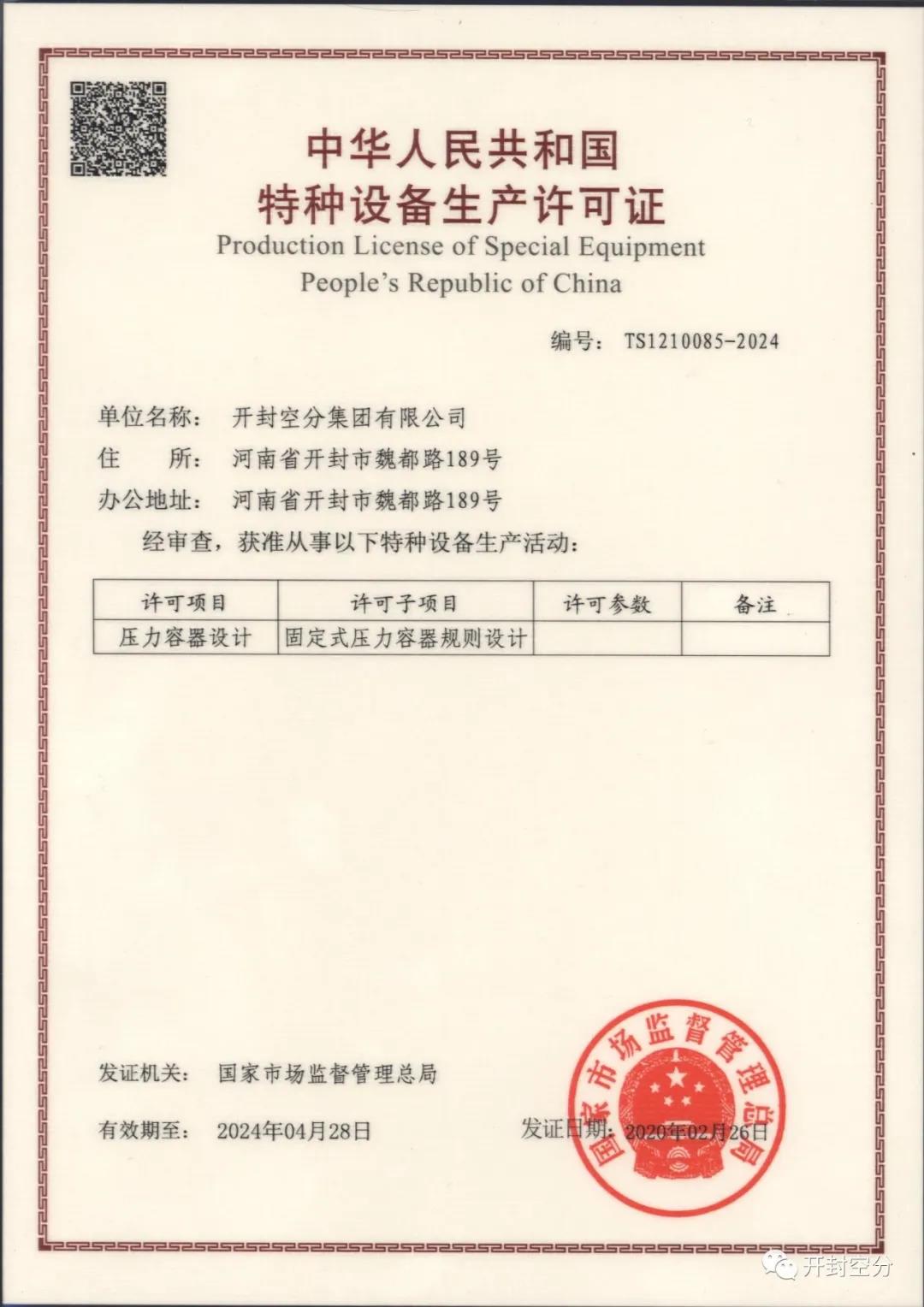 近日,公司正式取得固定式壓力容器規則設計許可證!